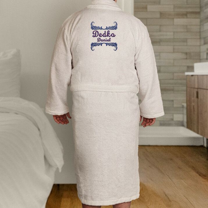 Univerzálny župan v bielej farbe, vyrobený zo 100% froté bavlny. Pohodlný, pekný, mäkký - poskytne vynikajúci komfort, keď všetky starosti dňa zmiznú a je čas relaxovať. Zahreje tiež ospalé telo ihneď po prebudení. Župan je zdobený personalizovanou výšivkou, ktorá vyzerá krásne, zlepšuje náladu a premieňa výrobok na jedinečný darček!Župan má elegantný strih s golierom a vreckami, aby ste mohli zažiariť na večernej domácej módnej prehliadke. Univerzálna veľkosť županu, hmotnosť 350 g / m2. Unisex.