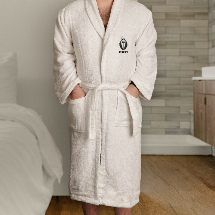 Univerzálny župan v bielej farbe, vyrobený zo 100% froté bavlny. Pohodlný, pekný, mäkký - poskytne vynikajúci komfort, keď všetky starosti dňa zmiznú a je čas relaxovať. Zahreje tiež ospalé telo ihneď po prebudení. Župan je zdobený personalizovanou výšivkou, ktorá vyzerá krásne, zlepšuje náladu a premieňa výrobok na jedinečný darček!Župan má elegantný strih s golierom a vreckami, aby ste mohli zažiariť na večernej domácej módnej prehliadke. Univerzálna veľkosť županu, hmotnosť 350 g / m2. Unisex.