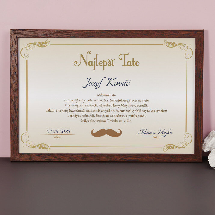 Certifikát je veľmi pekný a elegantný. Obsluha obchodu je vynikajúca! Odporúčam.