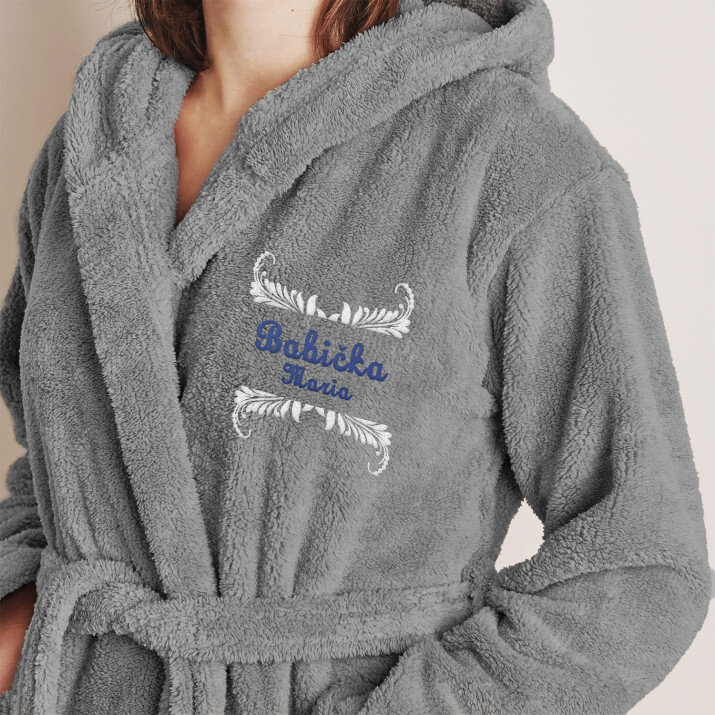 Univerzálny fleecový župan v šedej farbe, vyrobený zo 100% wellsoft polyesteru. Pohodlný, pekný, mäkký - poskytne vynikajúci komfort, keď všetky starosti dňa zmiznú a je čas relaxovať. Zahreje tiež ospalé telo ihneď po prebudení. Župan je zdobený personalizovanou výšivkou, ktorá vyzerá krásne, zlepšuje náladu a premieňa výrobok na jedinečný darček!Župan má elegantný strih s kapucňou a vreckami, aby bolo možné zažiariť na večernej domácej módnej prehliadke. Univerzálna veľkosť županu, hmotnosť 300 g / m2. Unisex.