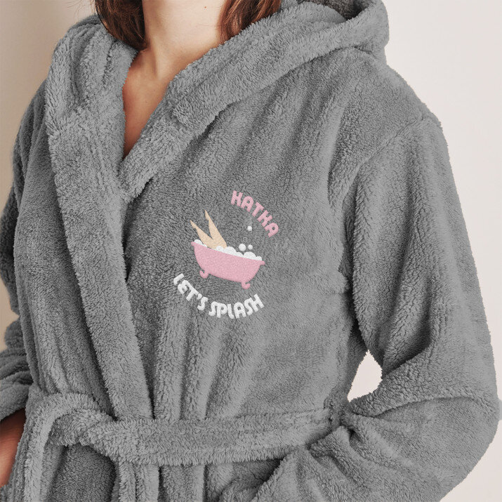Univerzálny fleecový župan v šedej farbe, vyrobený zo 100% wellsoft polyesteru. Pohodlný, pekný, mäkký - poskytne vynikajúci komfort, keď všetky starosti dňa zmiznú a je čas relaxovať. Zahreje tiež ospalé telo ihneď po prebudení. Župan je zdobený personalizovanou výšivkou, ktorá vyzerá krásne, zlepšuje náladu a premieňa výrobok na jedinečný darček!Župan má elegantný strih s kapucňou a vreckami, aby bolo možné zažiariť na večernej domácej módnej prehliadke. Univerzálna veľkosť županu, hmotnosť 300 g / m2. Unisex.