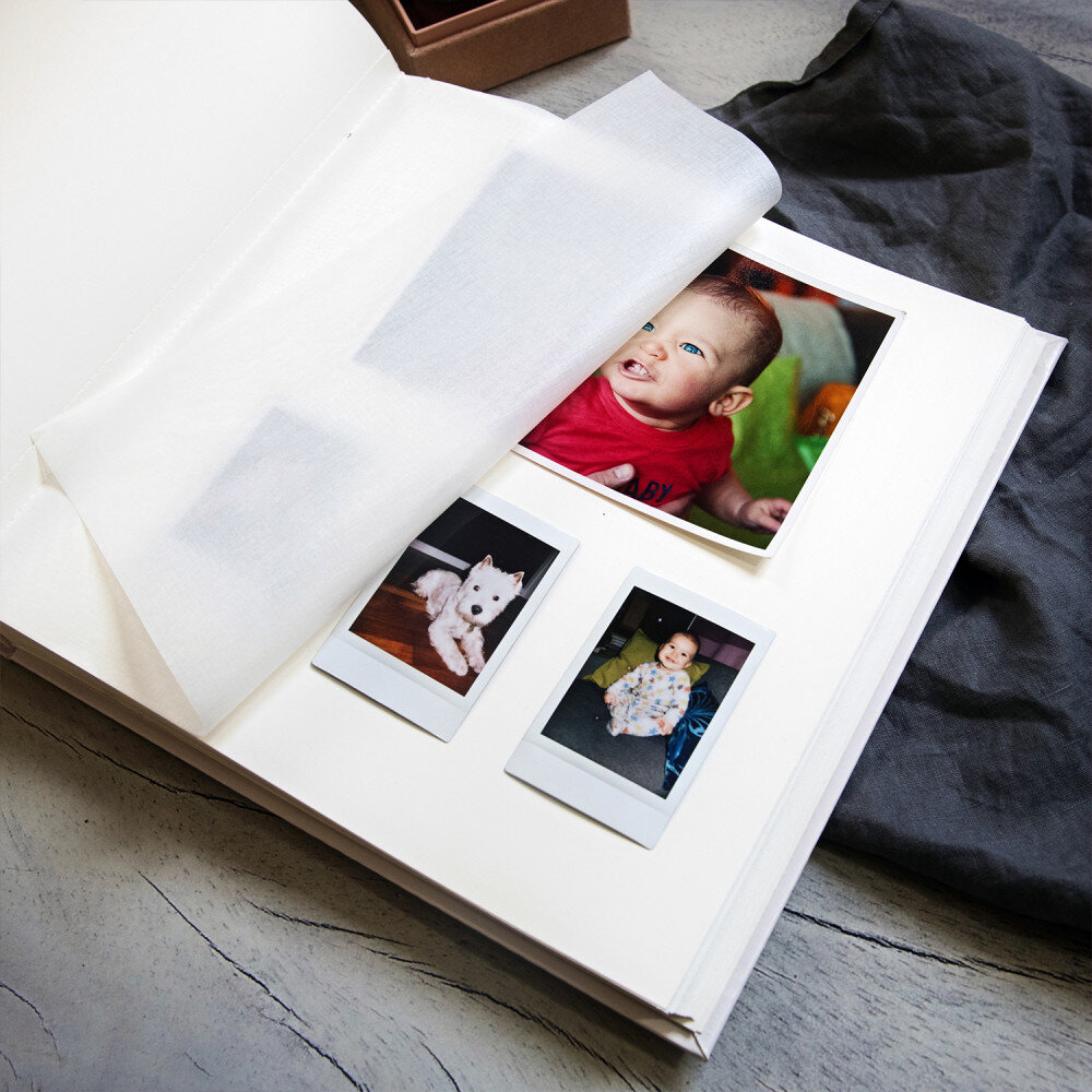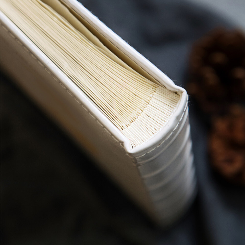 Tradičný fotoalbum s moderným nádychom. Kožená väzba je mierne lesklá. Koža je organická, hladká na dotyk a bielej farby. Album je jednoduchý a klasický, vhodný na mnohé príležitosti. Vo vnútri sa nachádzajú strany krémovej farby. Album je šitý, takže máme záruku trvanlivosti. Ideálny pre tých, ktorí hľadajú album na veľký počet fotografií.