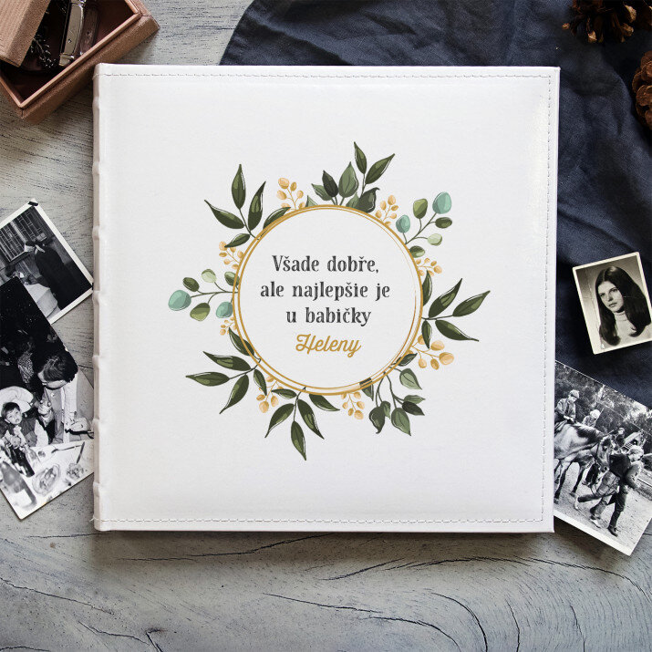 Obdĺžnikový fotoalbum, pozostávajúci z 75 strán (150 strán). Vo vnútri sa nachádzajú strany krémovej farby. Do albumu sa zmestí až 300 fotografií formátu 10x15. Rozmery: 19x25 cm.