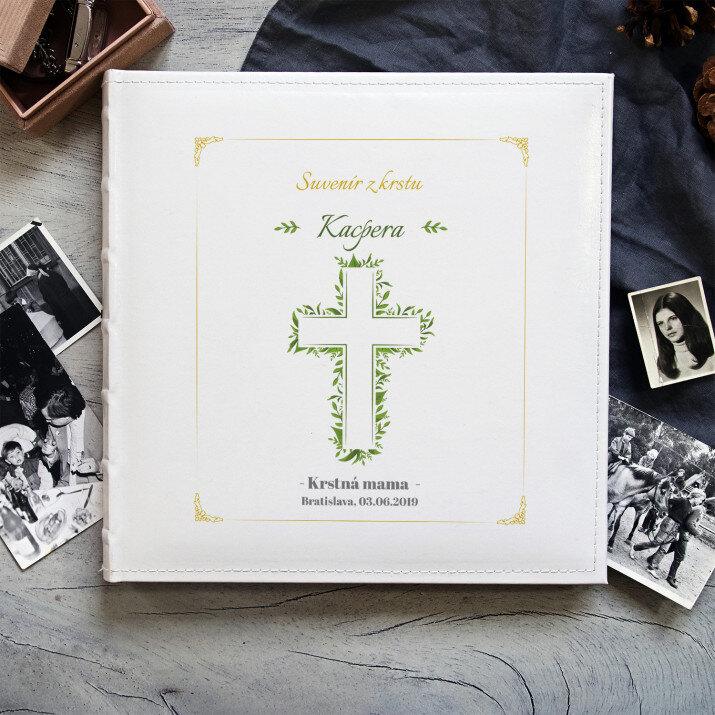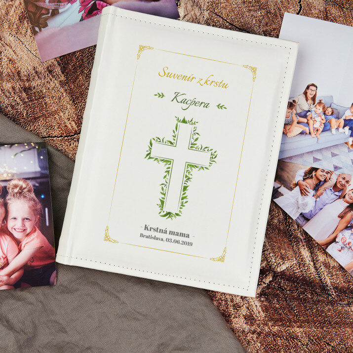 Z tohto albumu sme nadšení. Jedinečný spôsob ukladania fotografií z obradu krstu.