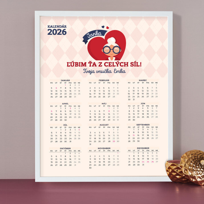Personalizovaný kalendár v ráme je skvelým tipom na darček, ktorý dokonale zapadne do každého interiéru! Celý rok je umiestnený na jednej strane, takže usporiadanie všetkých mesiacov je okamžite viditeľné. Potlač na fotopapieri vyzerá krásne, farby sú sýte a efekt trvácny. Je to perfektný darček a pamiatka v jednom!Rozmery: 40 x 50 cm