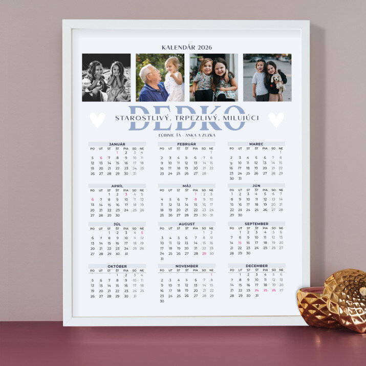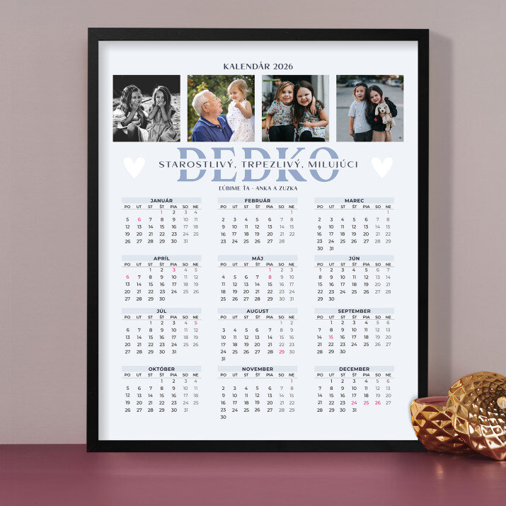 Personalizovaný kalendár v ráme je skvelým tipom na darček, ktorý dokonale zapadne do každého interiéru! Celý rok je umiestnený na jednej strane, takže usporiadanie všetkých mesiacov je okamžite viditeľné. Potlač na fotopapieri vyzerá krásne, farby sú sýte a efekt trvácny. Je to perfektný darček a pamiatka v jednom!Rozmery: 40 x 50 cm