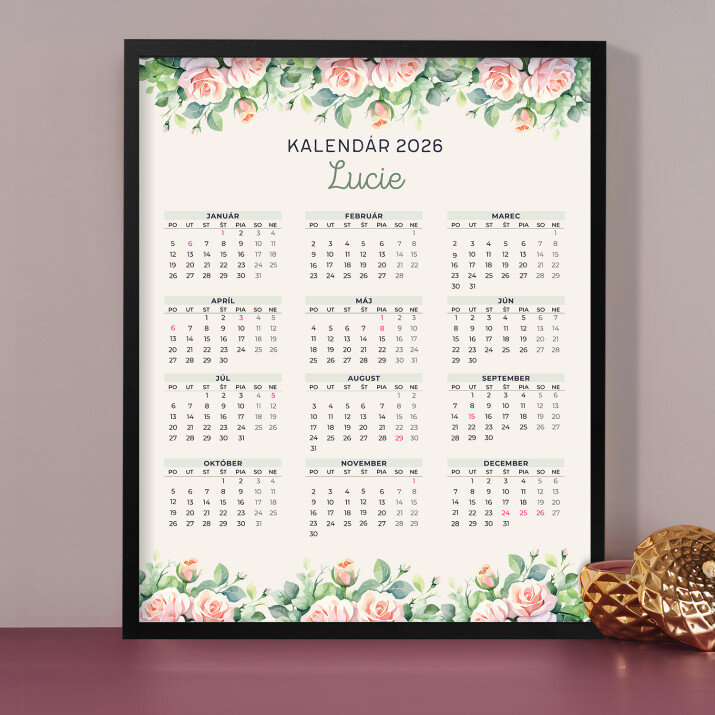 Personalizovaný kalendár v ráme je skvelým tipom na darček, ktorý dokonale zapadne do každého interiéru! Celý rok je umiestnený na jednej strane, takže usporiadanie všetkých mesiacov je okamžite viditeľné. Potlač na fotopapieri vyzerá krásne, farby sú sýte a efekt trvácny. Je to perfektný darček a pamiatka v jednom!Rozmery: 40 x 50 cm