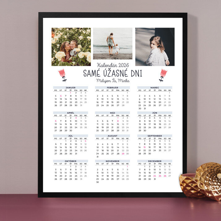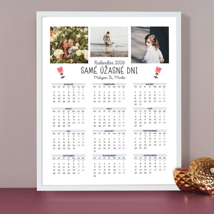 Personalizovaný kalendár v ráme je skvelým tipom na darček, ktorý dokonale zapadne do každého interiéru! Celý rok je umiestnený na jednej strane, takže usporiadanie všetkých mesiacov je okamžite viditeľné. Potlač na fotopapieri vyzerá krásne, farby sú sýte a efekt trvácny. Je to perfektný darček a pamiatka v jednom!Rozmery: 40 x 50 cm