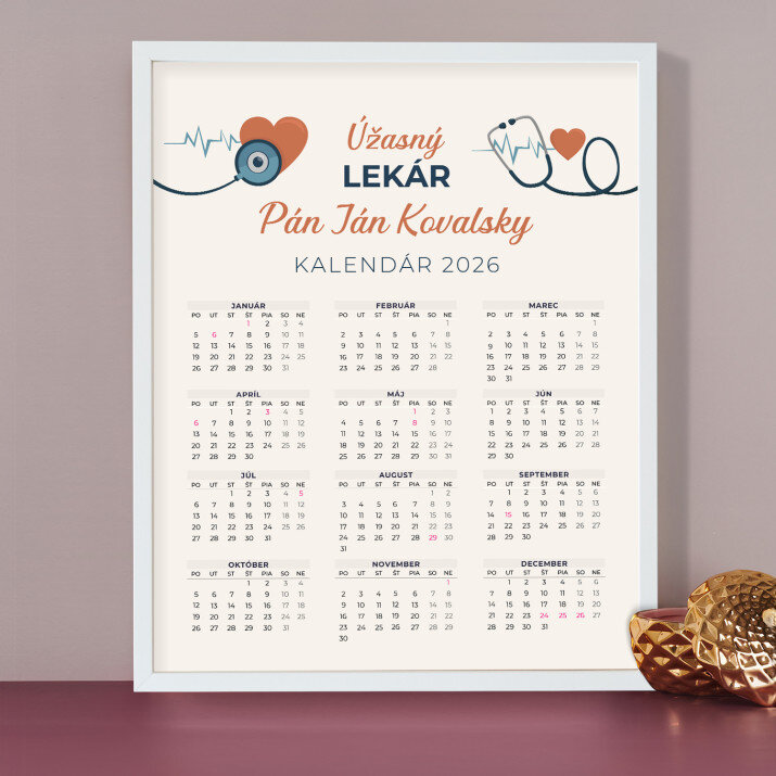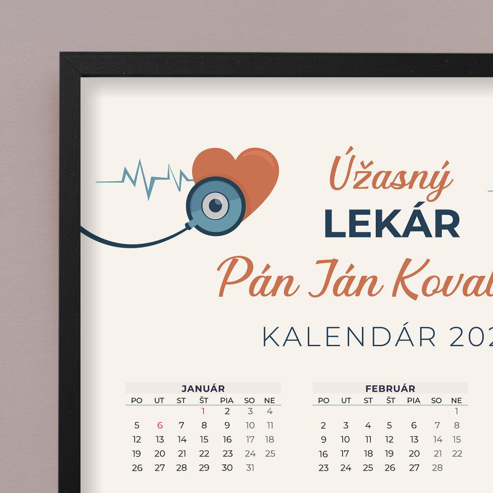 Personalizovaný kalendár v ráme je skvelým tipom na darček, ktorý dokonale zapadne do každého interiéru! Celý rok je umiestnený na jednej strane, takže usporiadanie všetkých mesiacov je okamžite viditeľné. Potlač na fotopapieri vyzerá krásne, farby sú sýte a efekt trvácny. Je to perfektný darček a pamiatka v jednom!Rozmery: 40 x 50 cm