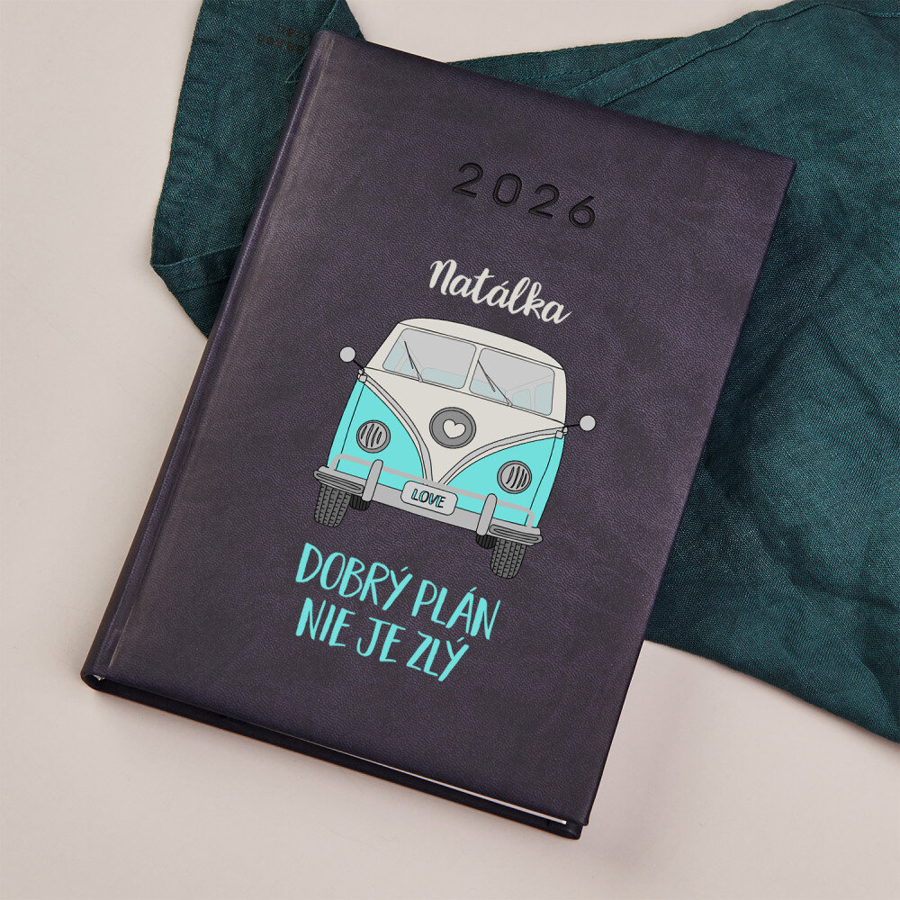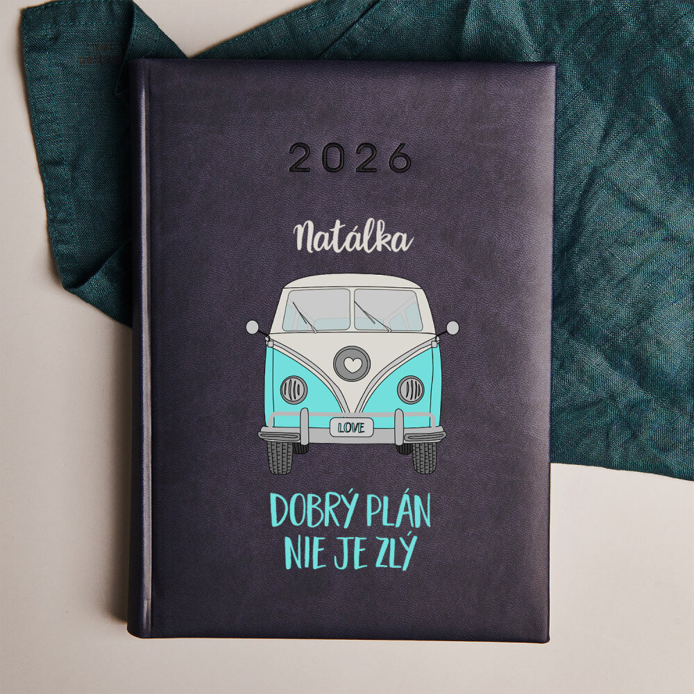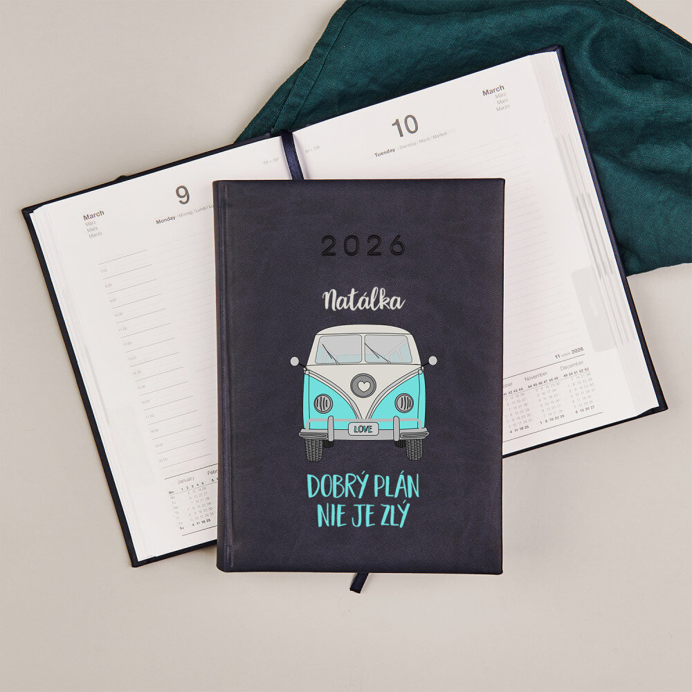 Wysokiej jakości kalendarz książkowy w formacie A5.Oprawa z aksamitnie miękkiego, miłego w dotyku, matowego materiału.
