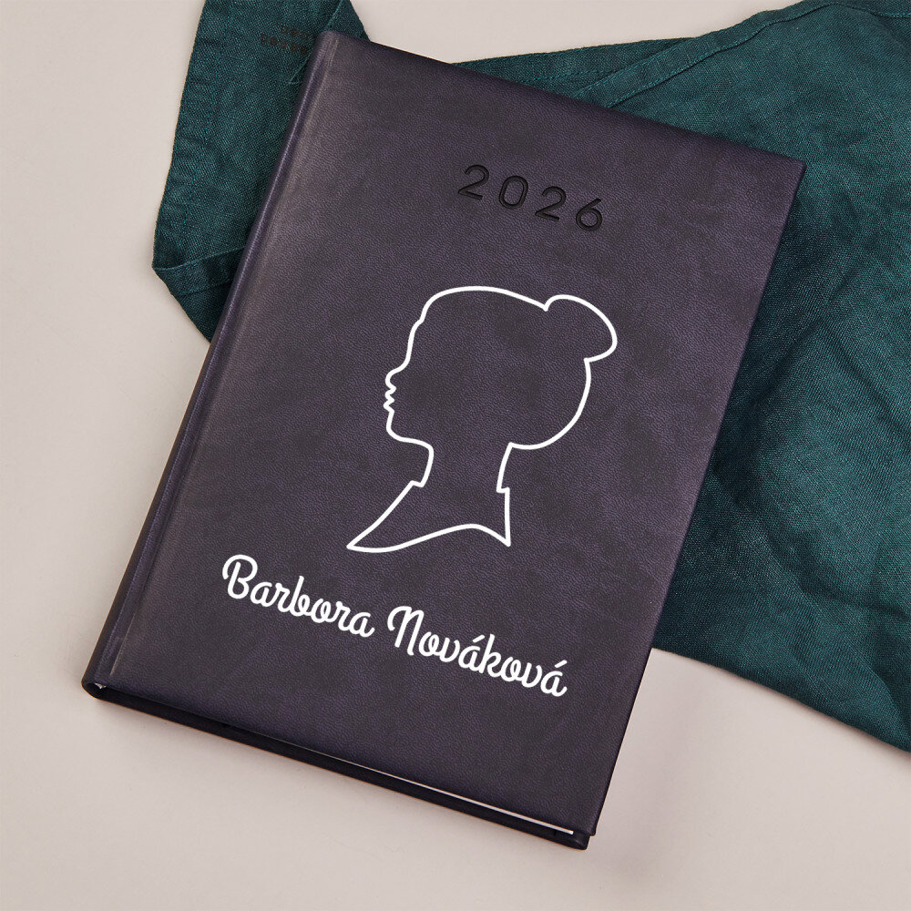 Wysokiej jakości kalendarz książkowy w formacie A5.Oprawa z aksamitnie miękkiego, miłego w dotyku, matowego materiału.