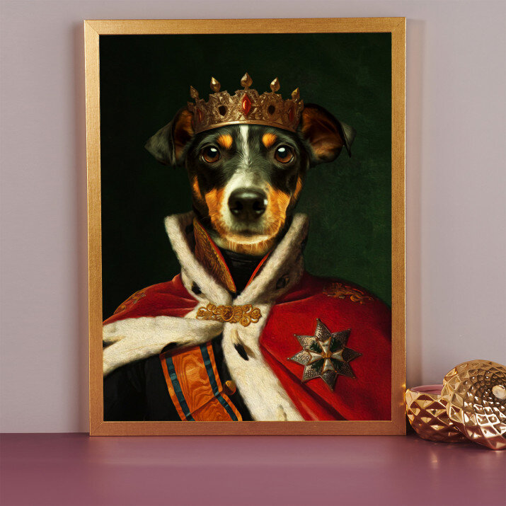Tvoj milovaný maznáčik ako hrdina Kráľovského portrétu, t.j. jedinečného výtlačku, ktorý bude vytvorený z fotky, ktorú pošleš. Ide o nevšedný darček, ktorý určite poteší každého milovníka zvierat a maznáčik bude prezentovaný dôstojne! Všetko, čo potrebuješ, je kvalitná fotografia, aby náš grafik urobil profesionálny návrh vo zvolenom štýle. Keď návrh prijmeš, vytvoríme darček, ktorý urobí dojem na Tvojich blízkych.OPIS PRODUKTU