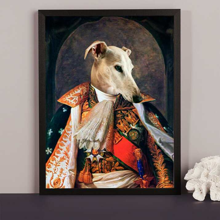 Tvoj milovaný maznáčik ako hrdina Kráľovského portrétu, t.j. jedinečného výtlačku, ktorý bude vytvorený z fotky, ktorú pošleš. Ide o nevšedný darček, ktorý určite poteší každého milovníka zvierat a maznáčik bude prezentovaný dôstojne! Všetko, čo potrebuješ, je kvalitná fotografia, aby náš grafik urobil profesionálny návrh vo zvolenom štýle. Keď návrh prijmeš, vytvoríme darček, ktorý urobí dojem na Tvojich blízkych.OPIS PRODUKTU