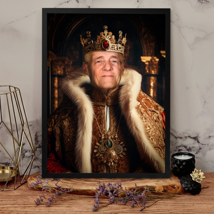 Staň sa hrdinom Kráľovského portrétu, teda jedinečnej tlače, ktorá bude vytvorená z fotky, ktorú pošleš. Toto je nezvyčajný darček, vďaka ktorému sa blízka osoba bude cítiť ako princezná, generál alebo dokonca kráľ! Všetko, čo potrebuješ, je kvalitná fotografia, aby náš grafik urobil profesionálny návrh vo zvolenom štýle. Keď projekt prijmeš, vytvoríme darček, ktorý urobí dojem na Tvojich blízkych.OPIS PRODUKTU