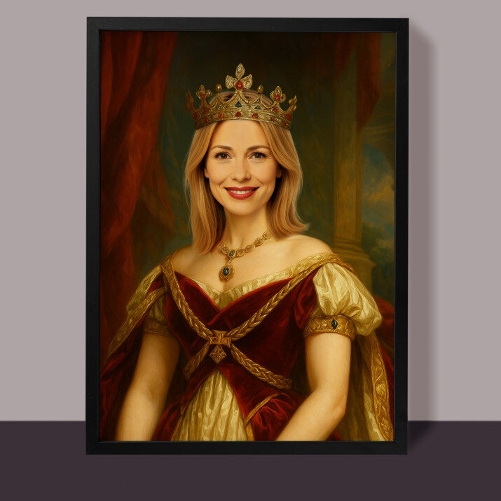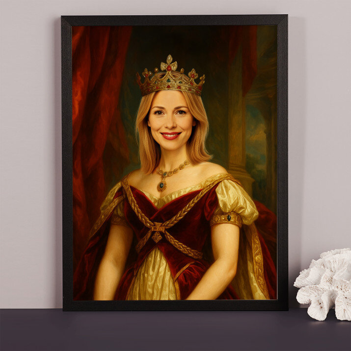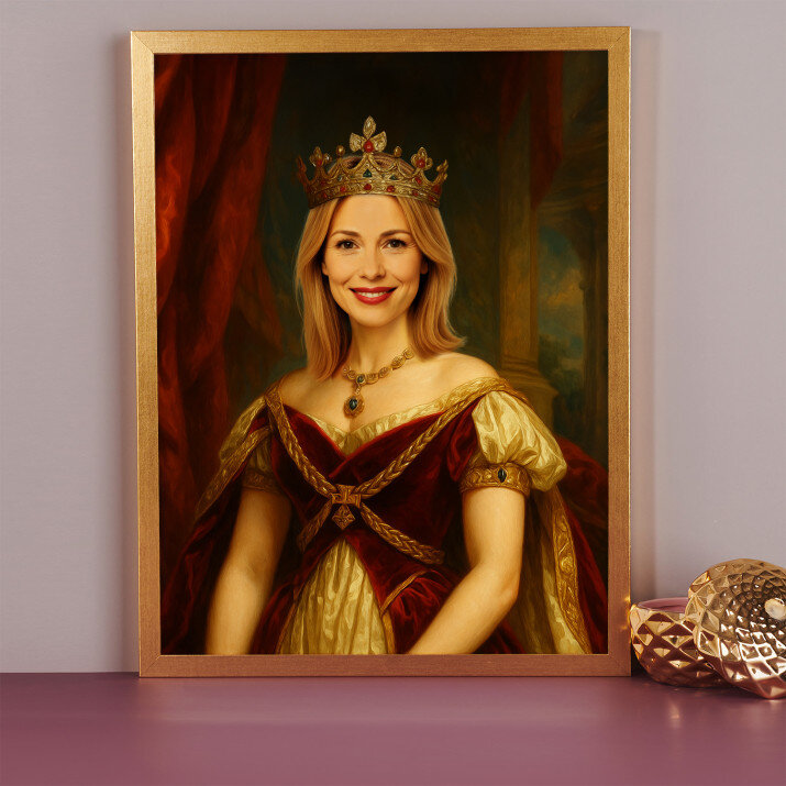 Staň sa hrdinom Kráľovského portrétu, teda jedinečnej tlače, ktorá bude vytvorená z fotky, ktorú pošleš. Toto je nezvyčajný darček, vďaka ktorému sa blízka osoba bude cítiť ako princezná, generál alebo dokonca kráľ! Všetko, čo potrebuješ, je kvalitná fotografia, aby náš grafik urobil profesionálny návrh vo zvolenom štýle. Keď projekt prijmeš, vytvoríme darček, ktorý urobí dojem na Tvojich blízkych.OPIS PRODUKTU