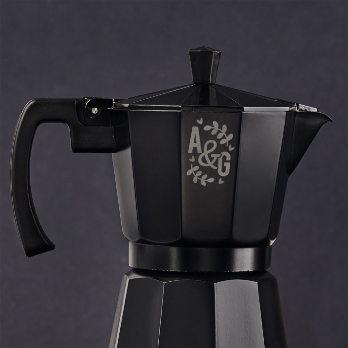 Čierny Moka kávovar vyrobený z hliníka je ideálnym riešením pre všetkých milovníkov kávy. Vysoko kvalitné materiály a kvalitná konštrukcia zaisťujú pohodlné používanie po dlhú dobu, a personalizované gravírovanie na čiernom povrchu dodáva výrobku jedinečný charakter.Príprava lahodnej kávy je veľmi jednoduchá! Spodná časť kávovaru je nádoba na vodu a horná časť je nádoba, v ktorej sa hotová káva hromadí počas varenia. Medzi nimi sa nachádza sitko na mletú kávu a gumové tesnenie. Káva vzniká v dôsledku tlaku vytvoreného v spodnej nádobe počas varenia. Použitie kávovaru: elektrický sporák, plynový sporák, keramická varná doska
