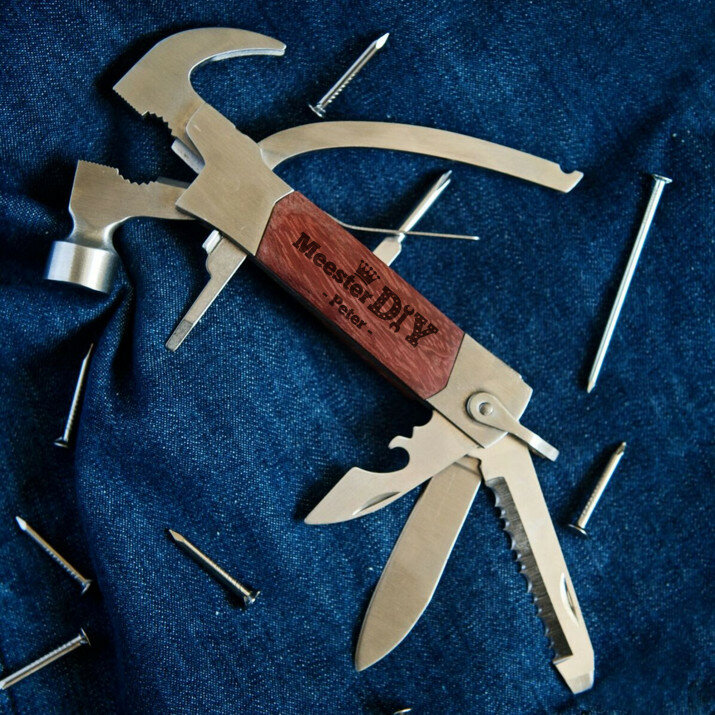 Multifunkčné náradie má rozmery 136 x 72 x 20 mm (v zloženom stave) a je vyrobené z kombinácie masívneho kovu a kvalitného dreva. Tradičný tvar klieští navyše plnia funkciu kladiva. Všetky funkcie náradia sú:- Nôž