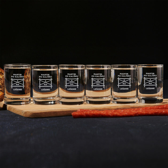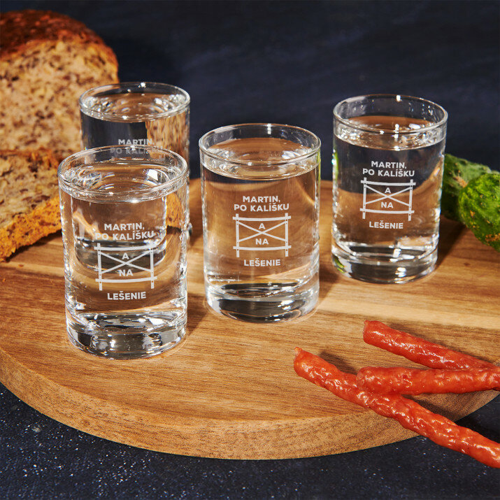 Elegantné poháre z číreho skla vysokej kvality. Jednoduchý, klasický tvar a dokonale vyvážené proporcie robia, že poldecáky oslovia každého a budú ideálne pre všetky druhy večierkov. Na hladký povrch produktu umiestňujeme personalizované gravírovanie, vďaka ktorému bude prednášanie prípitkov ešte príjemnejšie! Poháre sú k dispozícii jednotlivo a v súpravách po 2, 4 alebo 6 kusoch. Možné umývať v umývačke riadu.Objem: 50ml