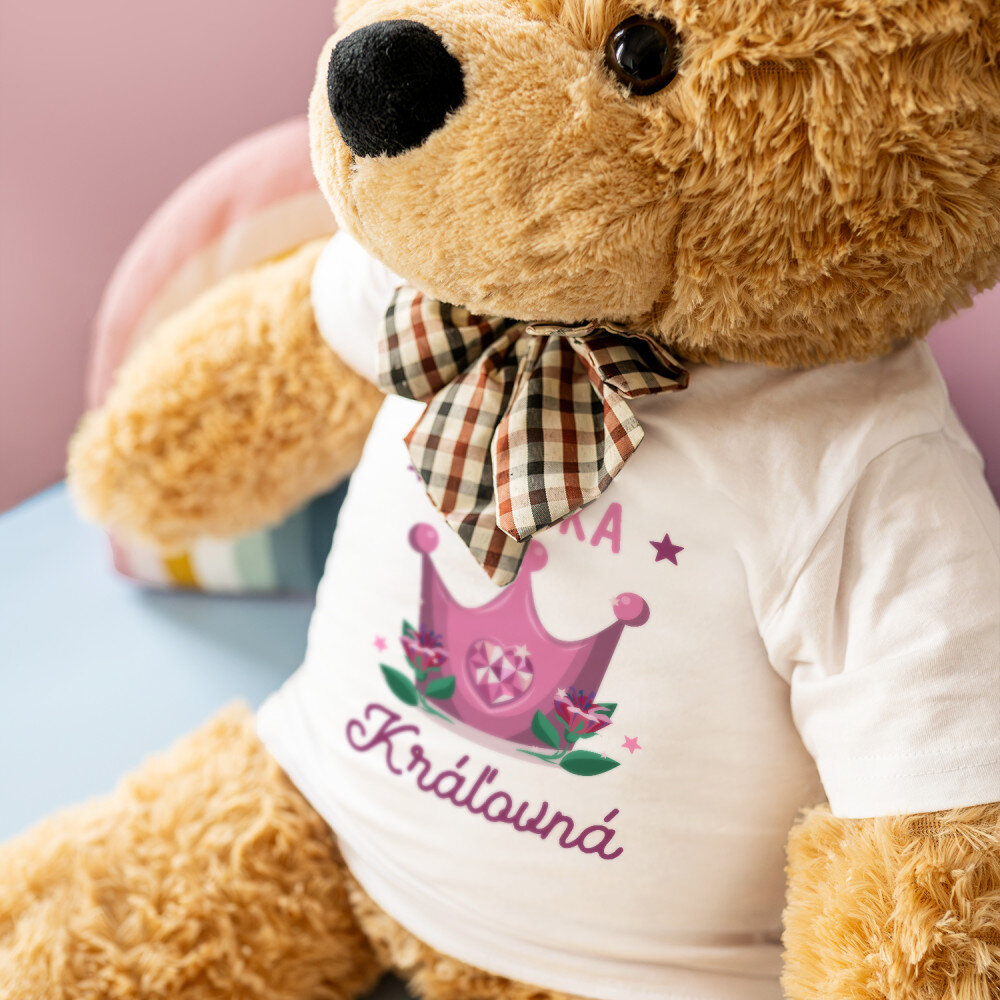 Veľký a mimoriadne roztomilý plyšový medvedík s personalizáciou na tričku. Je veľmi jemný na dotyk, takže obdarovaného určite poteší! Medvedík je vysoký 90 cm a je vyrobený s dôrazom na detail, vďaka čomu vyzerá jedinečne. Ideálny ako darček pre milovanú osobu.