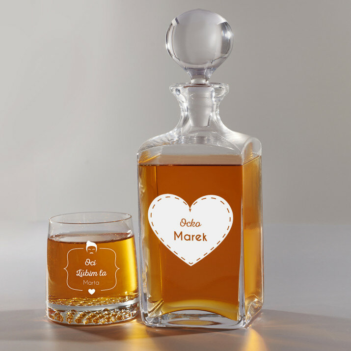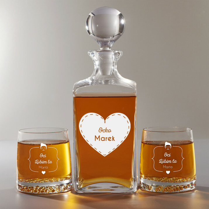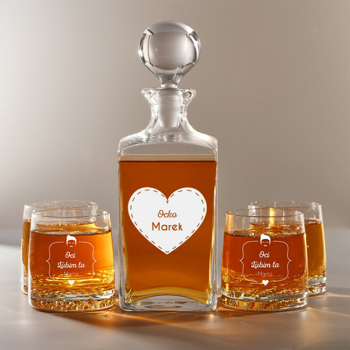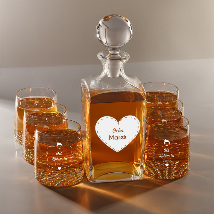 Súprava s gravírovanou karafou a pohármi je dostupná v štyroch variantoch:Karafa + 1 pohár