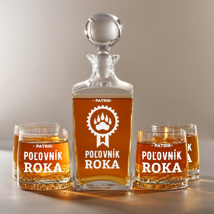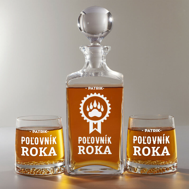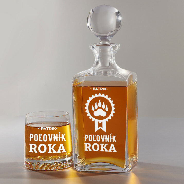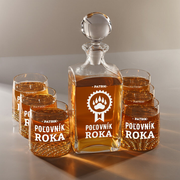 Súprava s gravírovanou karafou a pohármi je dostupná v štyroch variantoch: