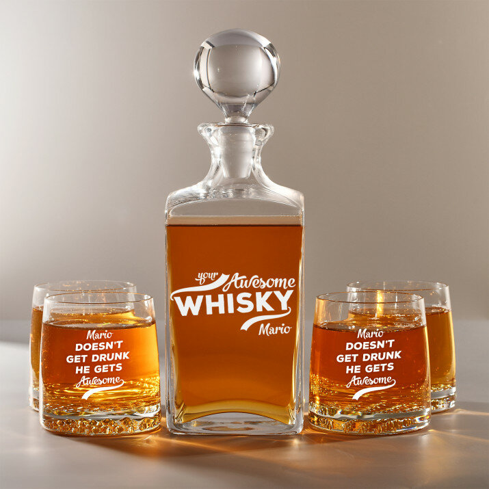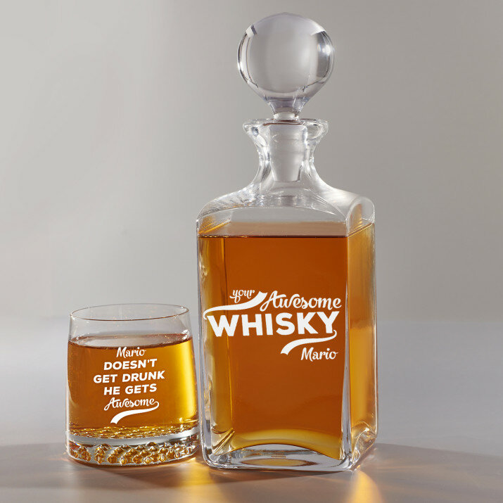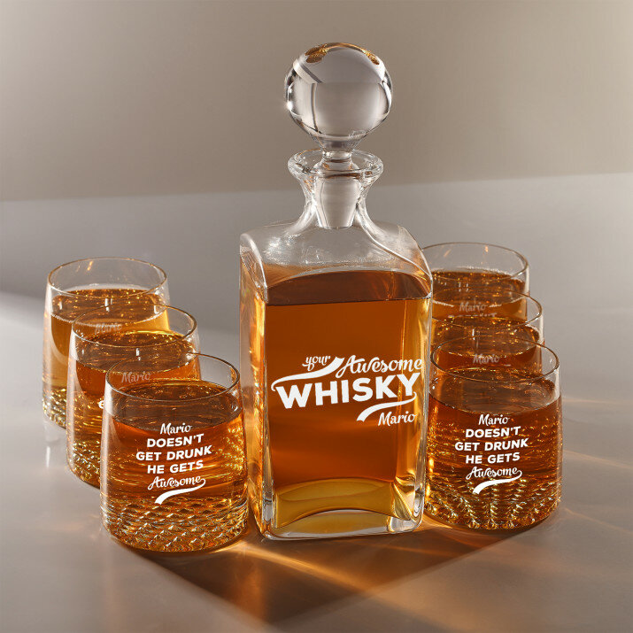 Súprava s gravírovanou karafou a pohármi je dostupná v štyroch variantoch:Karafa + 1 pohár