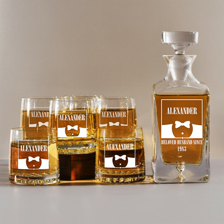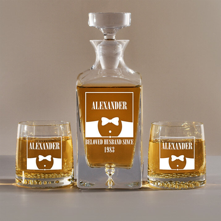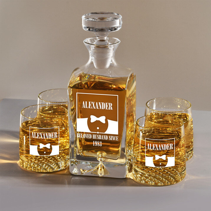 Súprava s gravírovanou karafou a pohármi je dostupná v štyroch variantoch:Karafa + 1 pohár