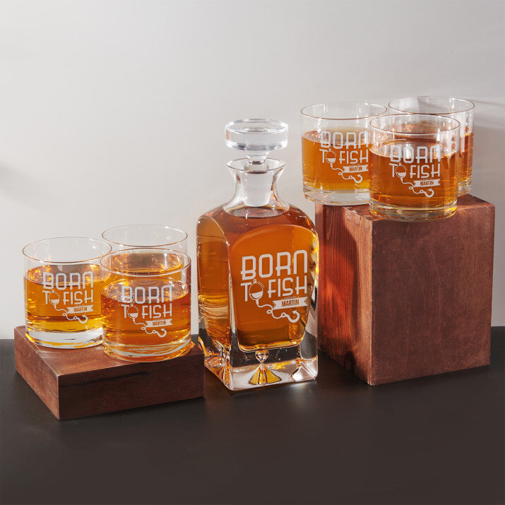 Súprava s gravírovanou karafou a pohármi je dostupná v štyroch variantoch: