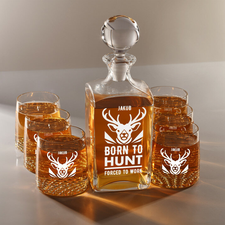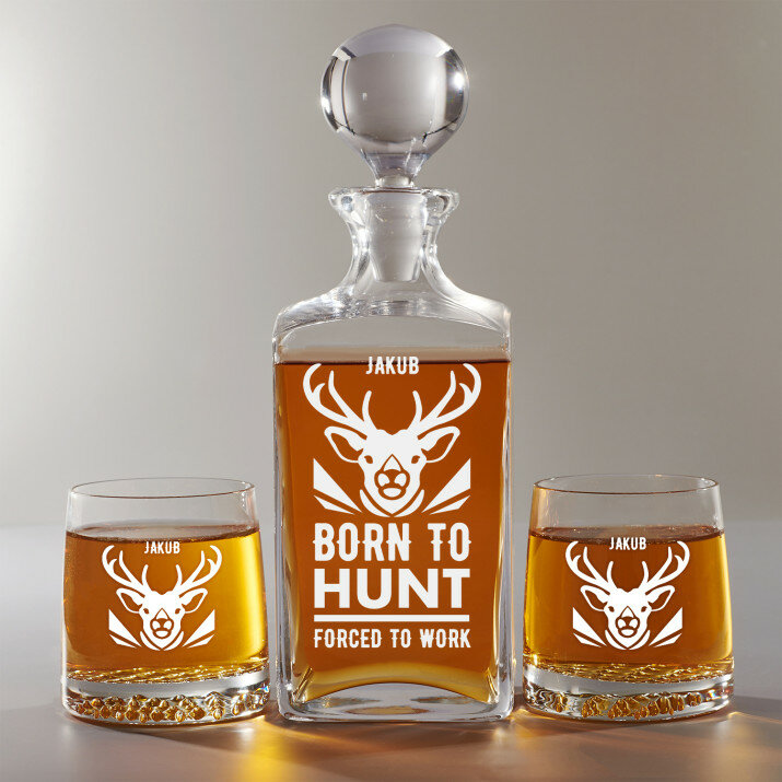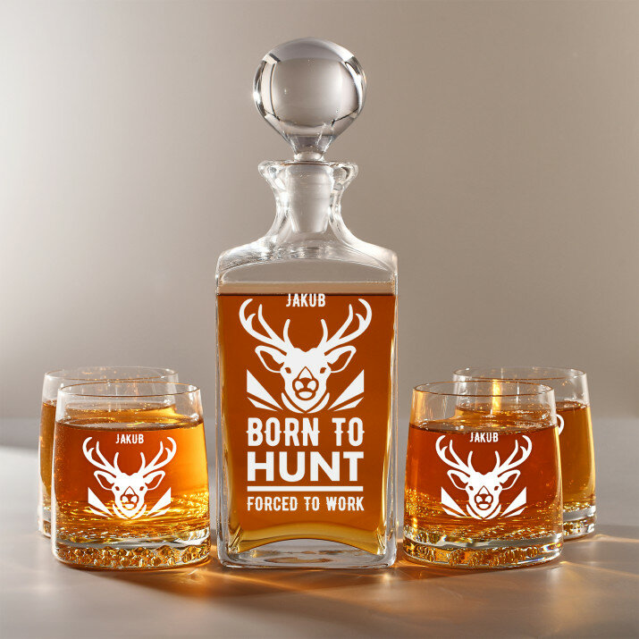 Súprava s gravírovanou karafou a pohármi je dostupná v štyroch variantoch:Karafa + 1 pohár