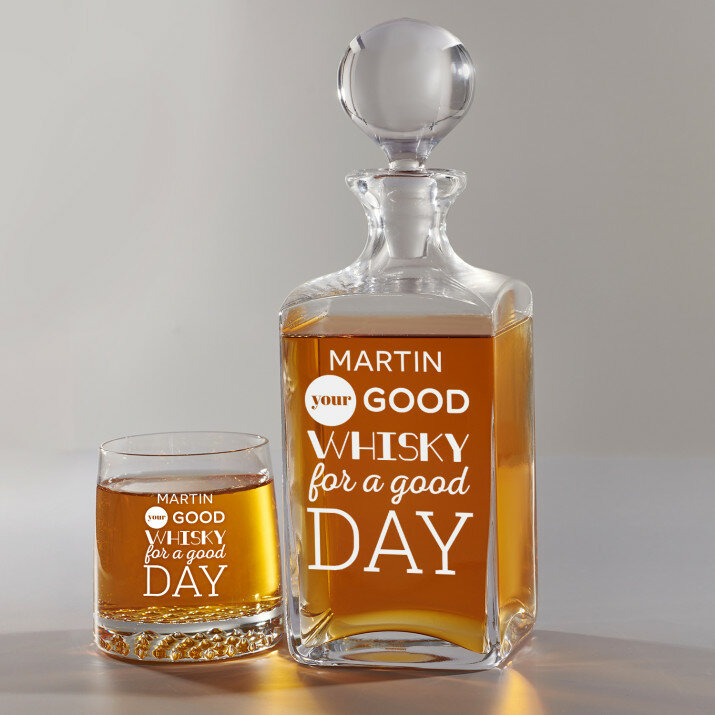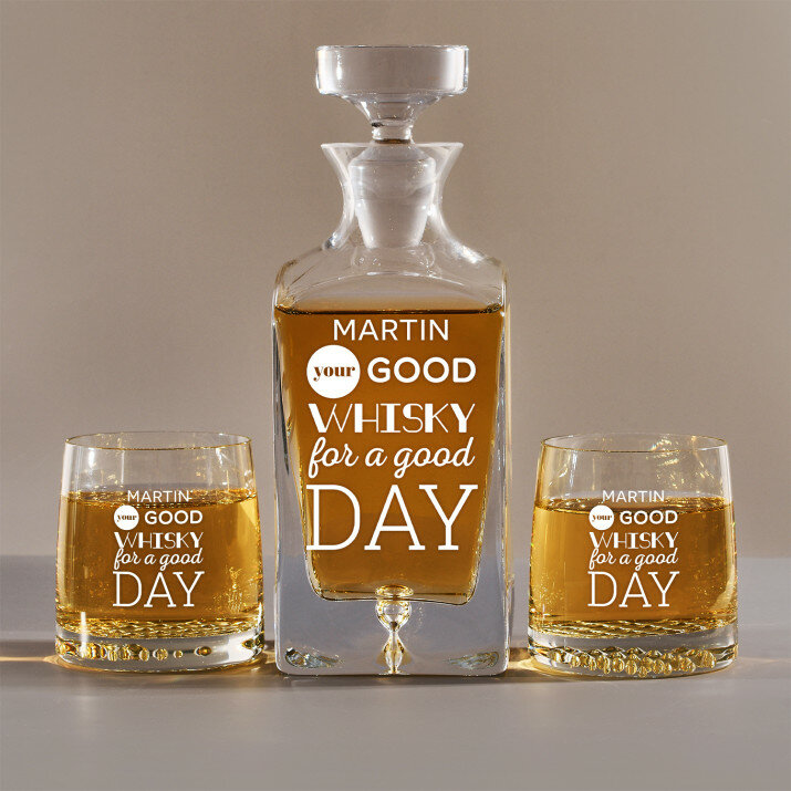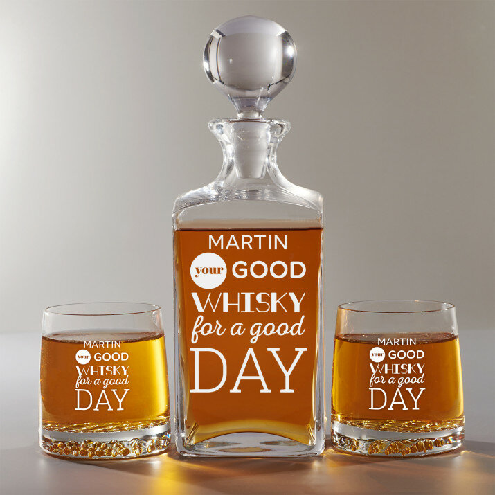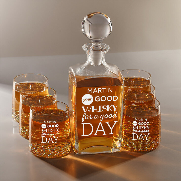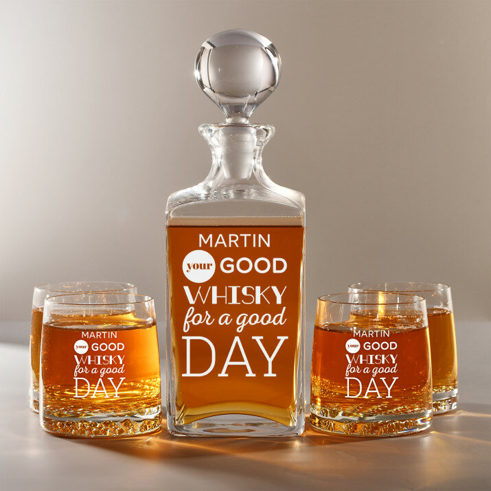 Súprava s gravírovanou karafou a pohármi je dostupná v štyroch variantoch:Karafa + 1 pohár