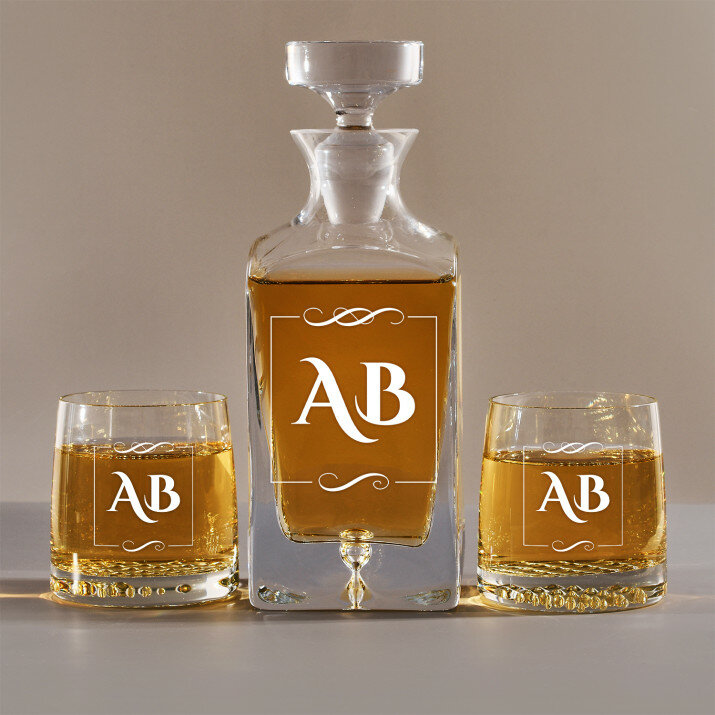 Súprava s gravírovanou karafou a pohármi je dostupná v štyroch variantoch:Karafa + 1 pohár