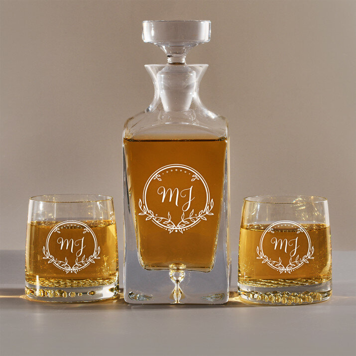 Súprava s gravírovanou karafou a pohármi je dostupná v štyroch variantoch:Karafa + 1 pohár