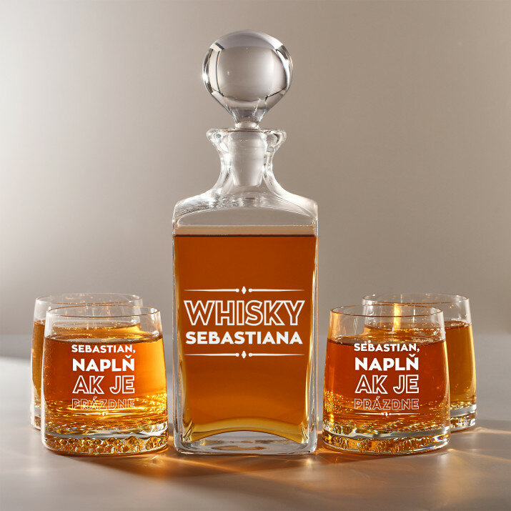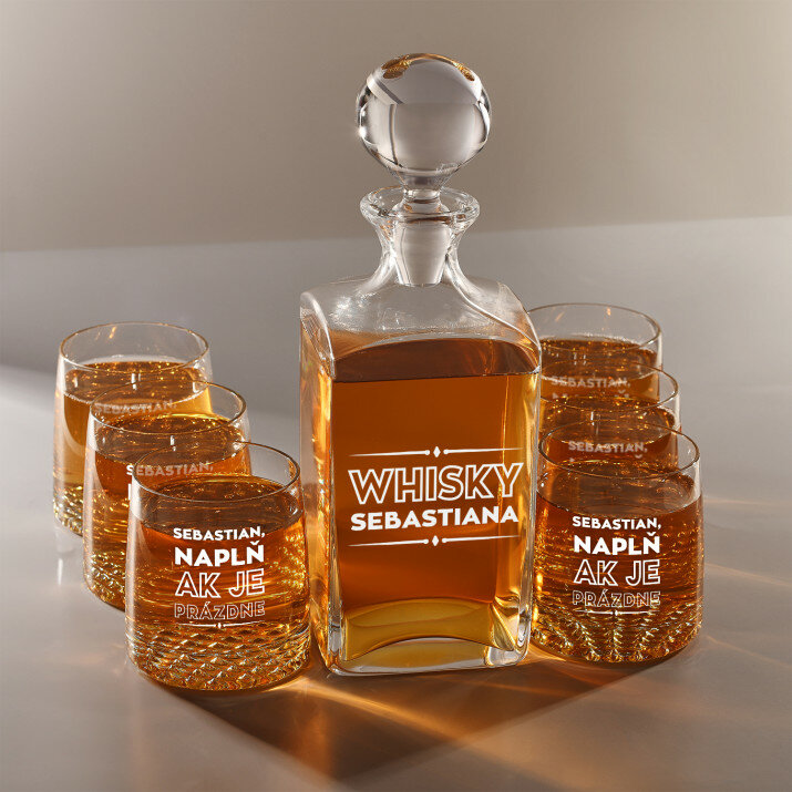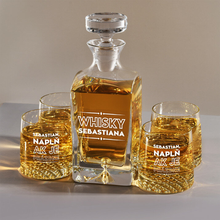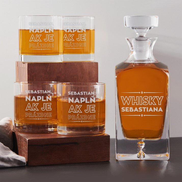 Súprava s gravírovanou karafou a pohármi je dostupná v štyroch variantoch:Karafa + 1 pohár