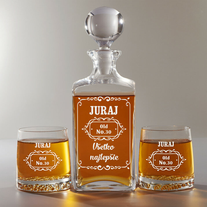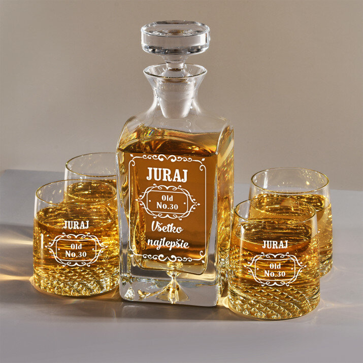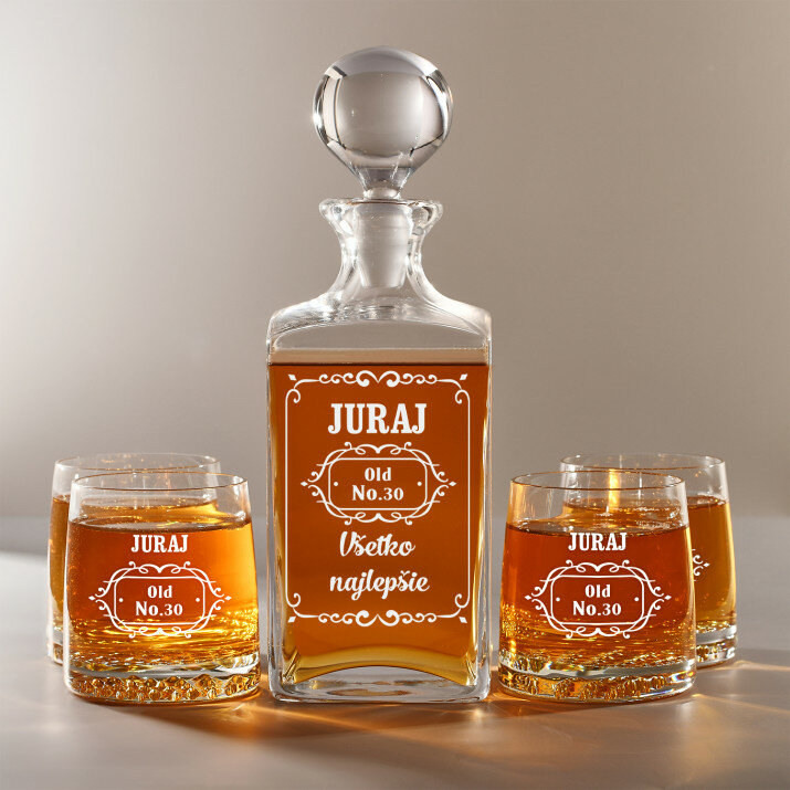 Súprava s gravírovanou karafou a pohármi je dostupná v štyroch variantoch:Karafa + 1 pohár