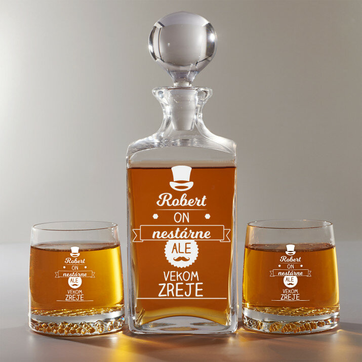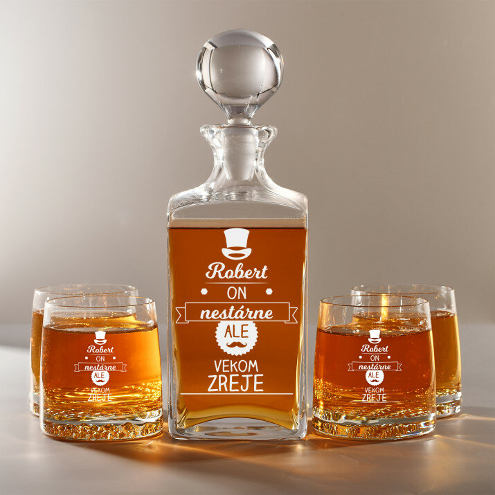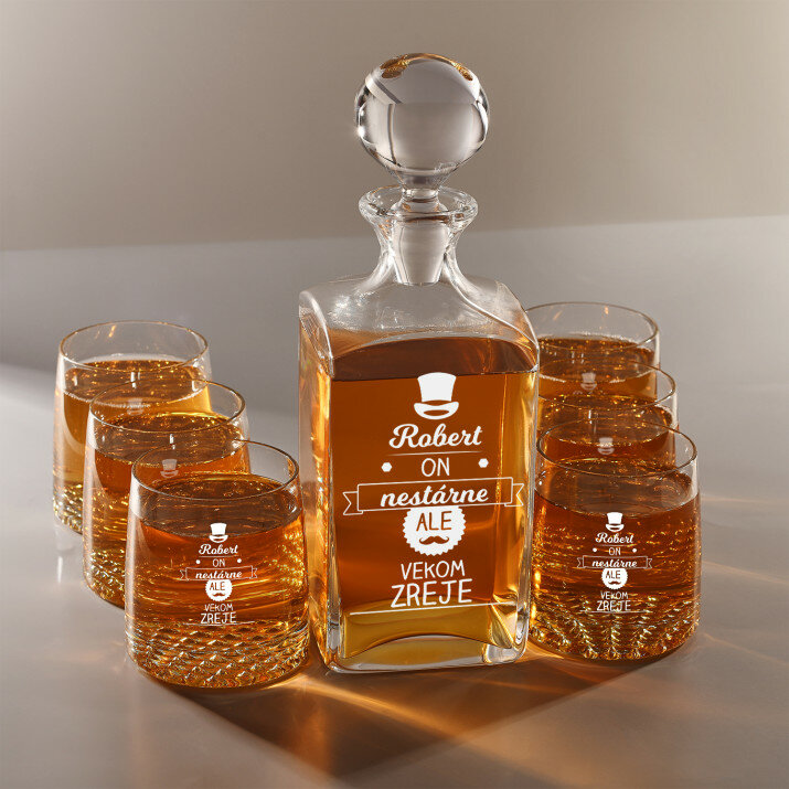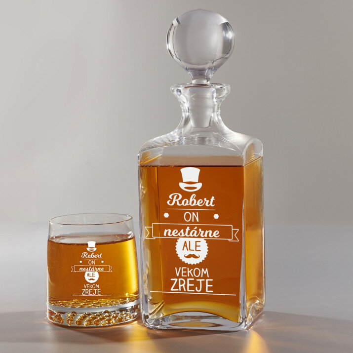 Súprava s gravírovanou karafou a pohármi je dostupná v štyroch variantoch:Karafa + 1 pohár
