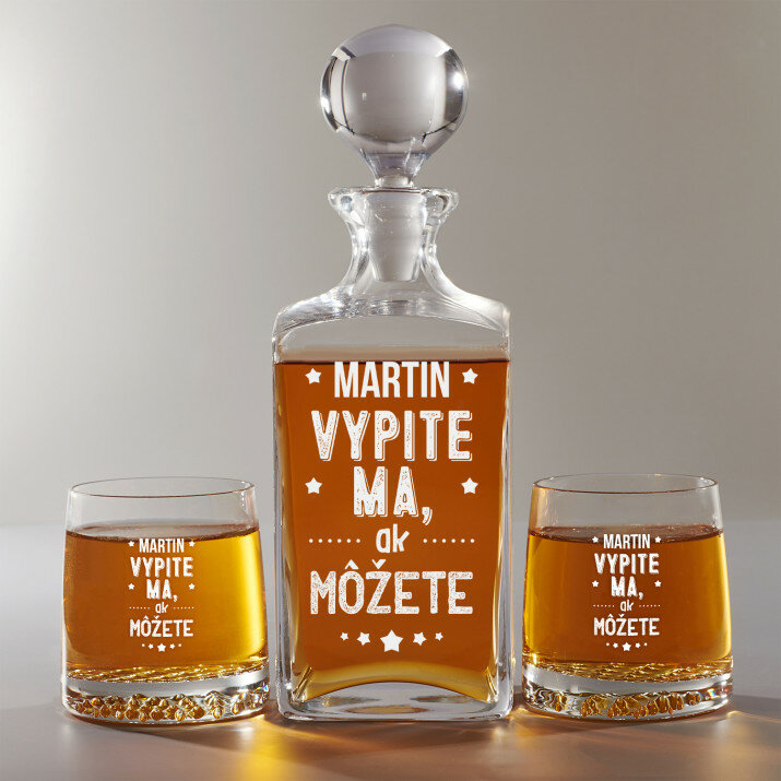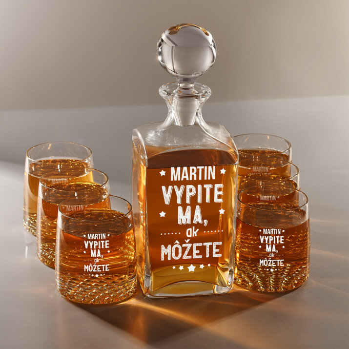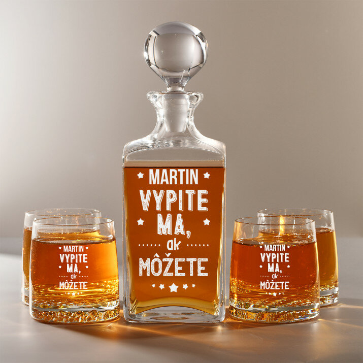 Súprava s gravírovanou karafou a pohármi je dostupná v štyroch variantoch:Karafa + 1 pohár