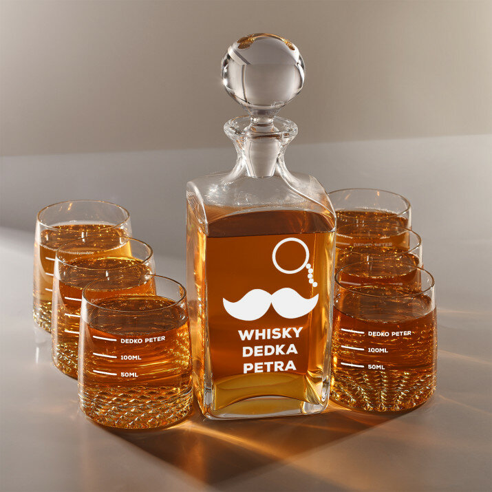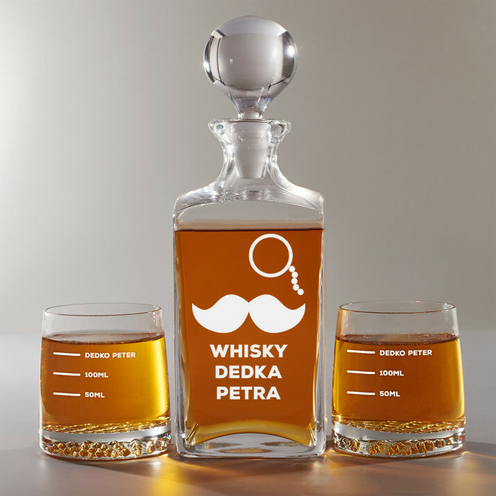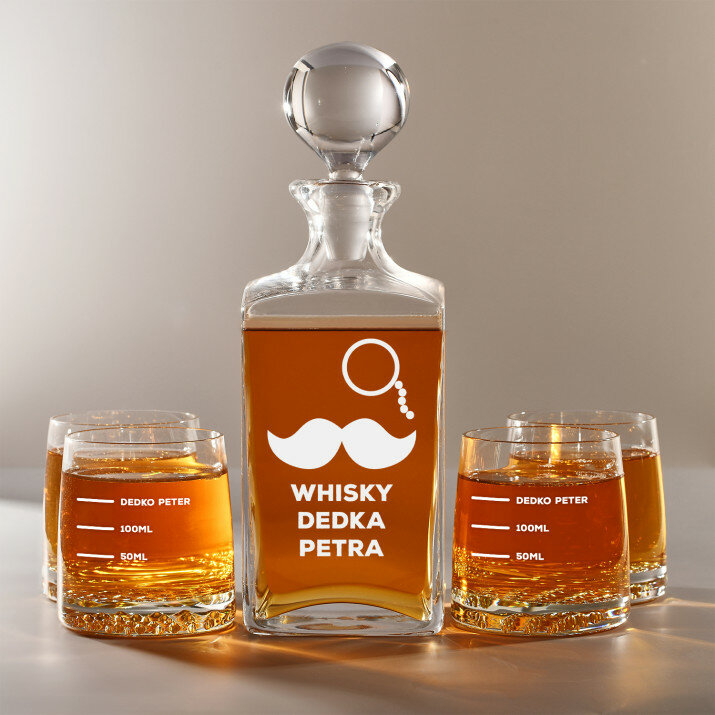 Súprava s gravírovanou karafou a pohármi je dostupná v štyroch variantoch:Karafa + 1 pohár
