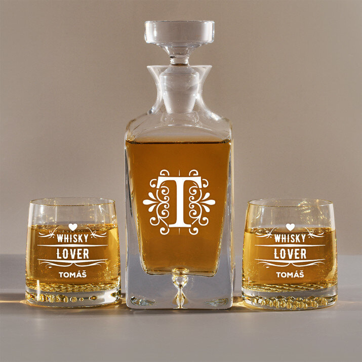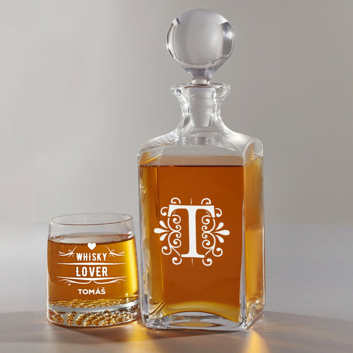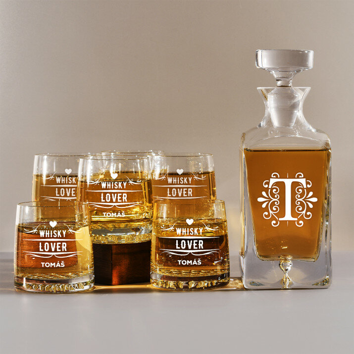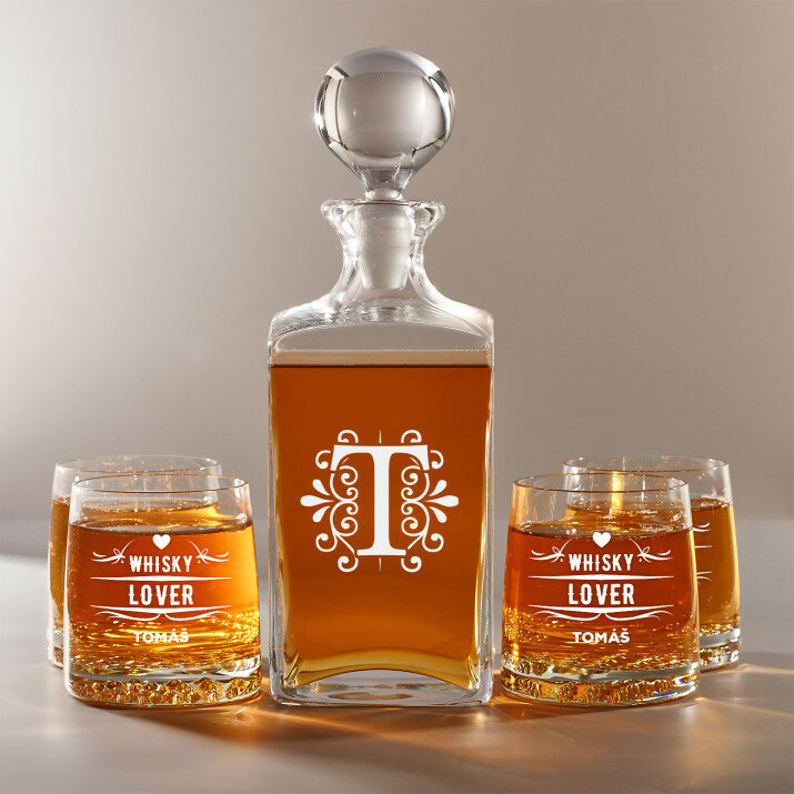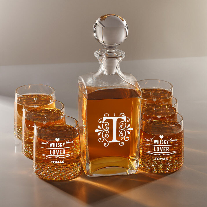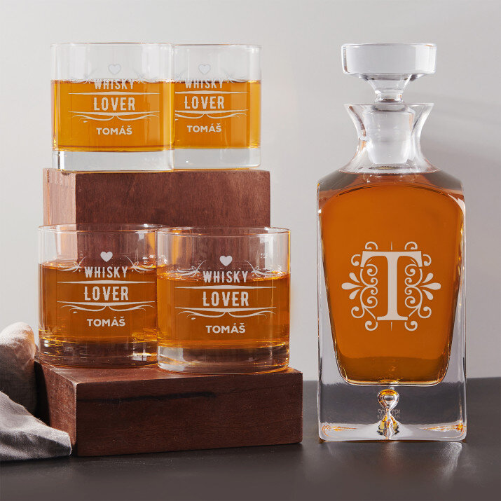 Súprava s gravírovanou karafou a pohármi je dostupná v štyroch variantoch:Karafa + 1 pohár