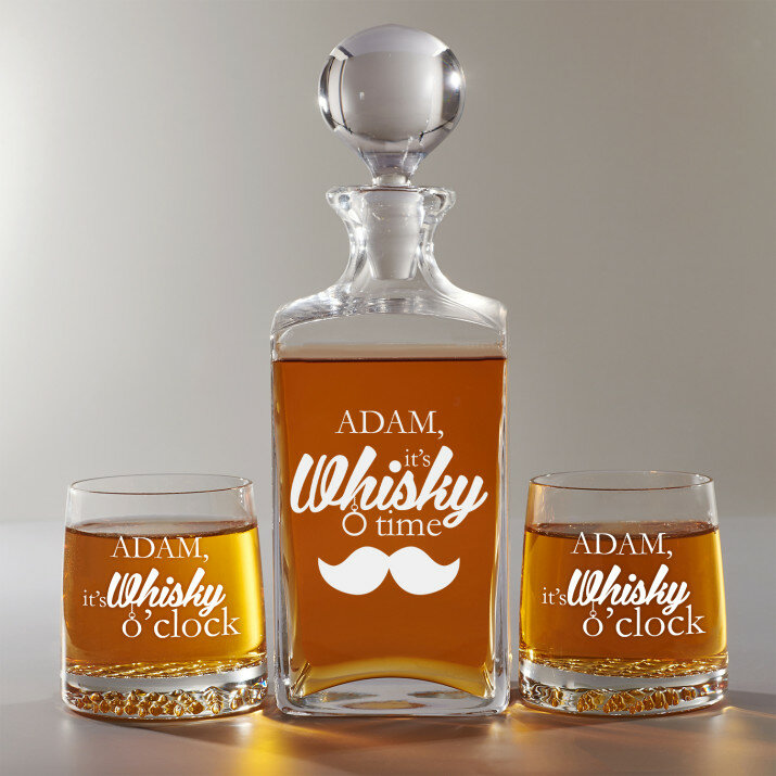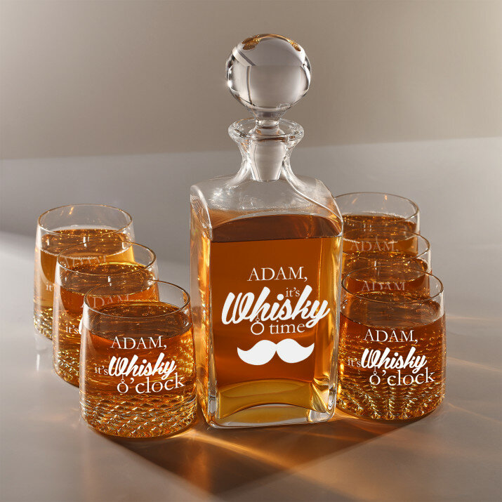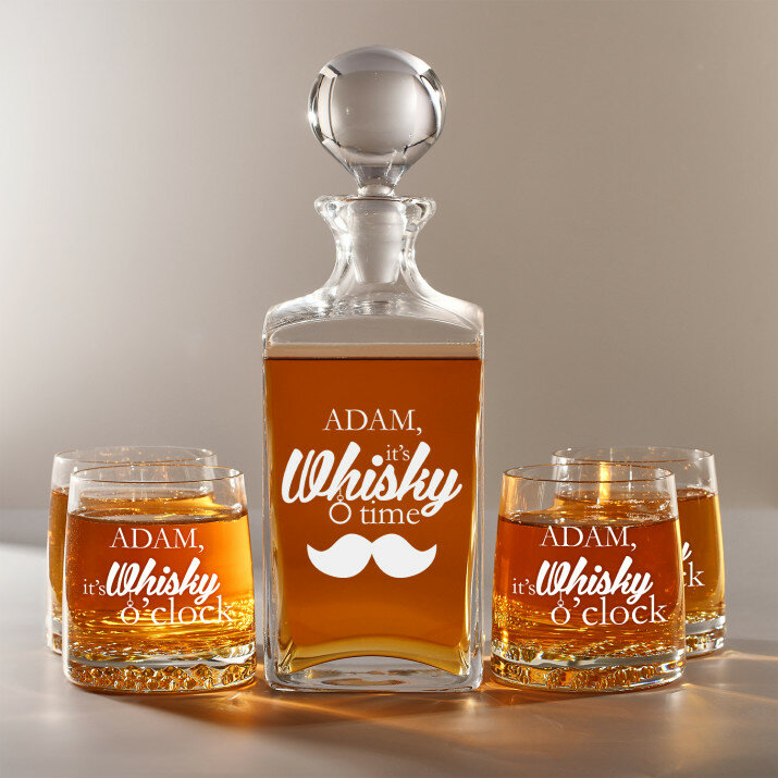 Súprava s gravírovanou karafou a pohármi je dostupná v štyroch variantoch:Karafa + 1 pohár