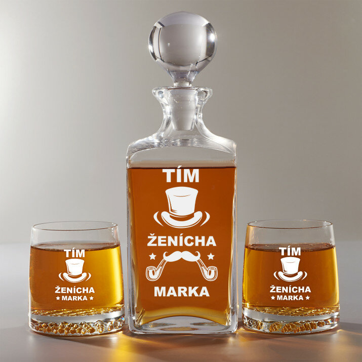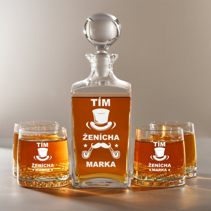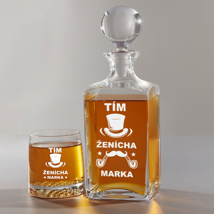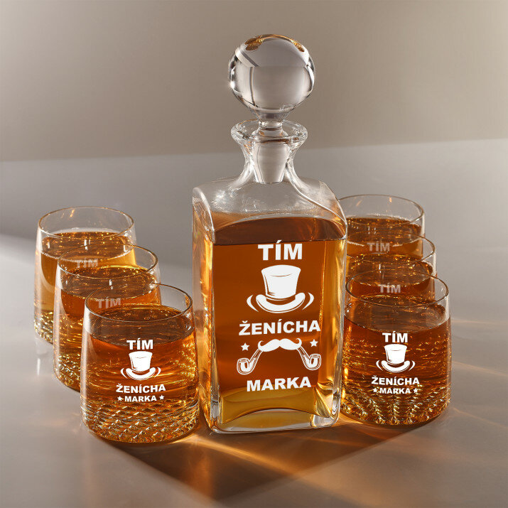 Súprava s gravírovanou karafou a pohármi je dostupná v štyroch variantoch:Karafa + 1 pohár
