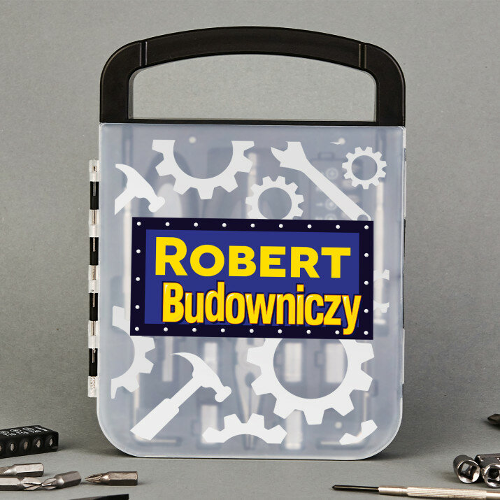 22-dielna sada náradia v uzamykateľnom plastovom kufríku s pohodlnou rukoväťou. Súprava obsahuje napr. skrutkovač s vymeniteľnými hrotmi, kliešte, dláta a nástrčné kľúče. Vďaka kompaktnému kufríku si svoju šikovnú súpravu môžeš vziať kamkoľvek a neprekvapí Ťa žiadna chyba! Kufor je čiernej farby a na veku sa nachádza personalizovaná farebná potlač. Takýto darček bude užitočný pre každého!