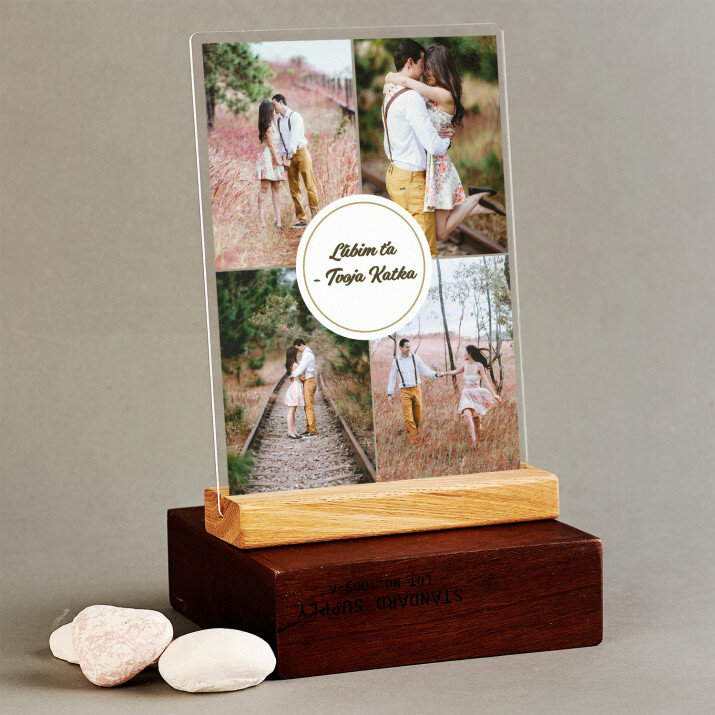 Výnimočná pamiatka, ktorá poteší obdarovaného! Výtlačok na priehľadnom akrylovom skle (plexisklo) s hrúbkou 2 mm je darček, ktorý bude robiť radosť mnoho rokov. Produkt je vyrobený z vysokokvalitných materiálov a je odolný voči poškodeniu alebo poveternostným vplyvom. Vďaka elegantnému drevenému stojanu môžeš výtlačok umiestniť na poličku. Garantujeme, že to bude skvelé prekvapenie pre Tvojich blízkych!Rozmery skla: 21 x 12,5 cm