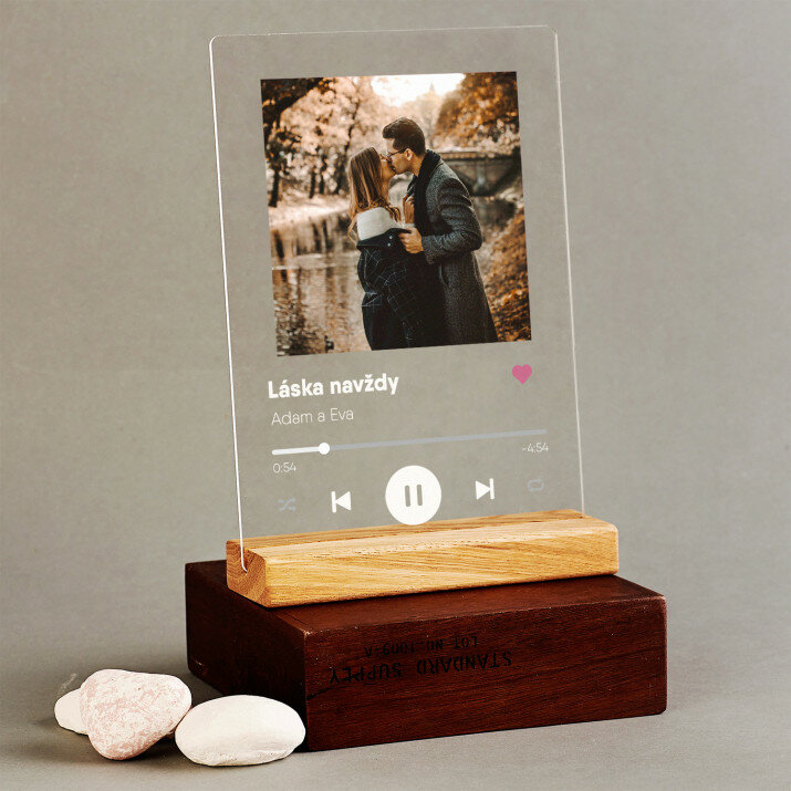Výnimočná pamiatka, ktorá poteší obdarovaného! Výtlačok na priehľadnom akrylovom skle (plexisklo) s hrúbkou 2 mm je darček, ktorý bude robiť radosť mnoho rokov. Produkt je vyrobený z vysokokvalitných materiálov a je odolný voči poškodeniu alebo poveternostným vplyvom. Vďaka elegantnému drevenému stojanu môžeš výtlačok umiestniť na poličku. Garantujeme, že to bude skvelé prekvapenie pre Tvojich blízkych!Rozmery skla: 21 x 12,5 cm
