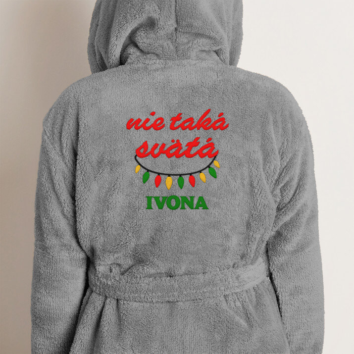 Univerzálny fleecový župan v šedej farbe, vyrobený zo 100% wellsoft polyesteru. Pohodlný, pekný, mäkký - poskytne vynikajúci komfort, keď všetky starosti dňa zmiznú a je čas relaxovať. Zahreje tiež ospalé telo ihneď po prebudení. Župan je zdobený personalizovanou výšivkou, ktorá vyzerá krásne, zlepšuje náladu a premieňa výrobok na jedinečný darček!Župan má elegantný strih s kapucňou a vreckami, aby bolo možné zažiariť na večernej domácej módnej prehliadke. Univerzálna veľkosť županu, hmotnosť 300 g / m2. Unisex.