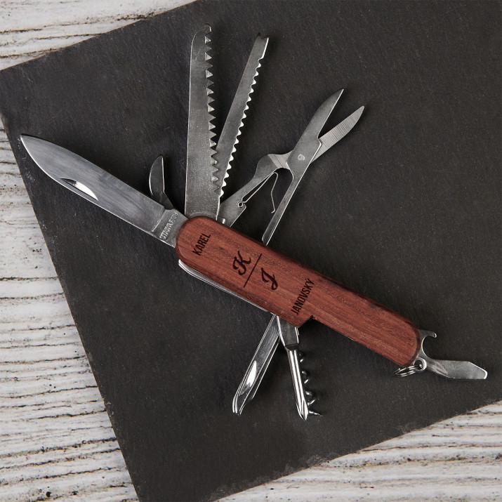 Kovový vreckový nôž s drevenou rukoväťou zdobený gravírovaním podľa Tvojho výberu. Celé to vyzerá veľmi elegantne, takže je to skvelý darček pre každého majstra a nielen pre neho! Rozmery skladacieho vreckového noža: 90 x 20 x 25 mm.