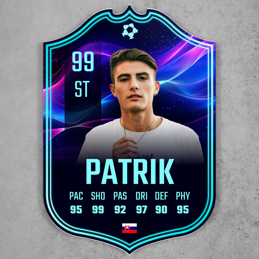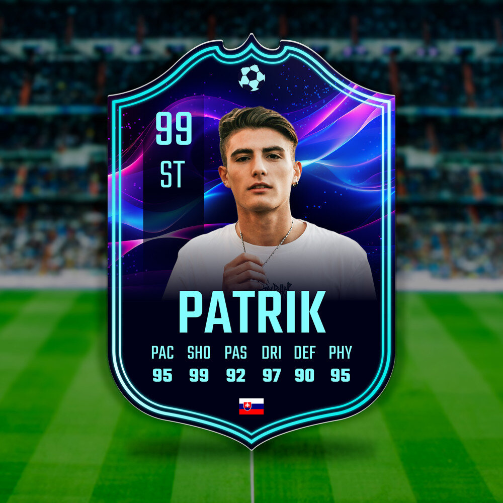 Jedinečný darček pre športových fanúšikov, ktorý obdarovaného poteší! Tlač na 3 mm hrubom, bezfarebnom akrylovom skle (plexisklo) v tvare karty, je darček, ktorý vydrží roky. Materiál sa vyznačuje vynikajúcou kvalitou povrchu, tuhosťou, je odolný voči poškodeniu a poveternostným vplyvom. Karta hráča je dodávaná so suchým zipsom, takže výtlačok je možné pripevniť na stenu!
