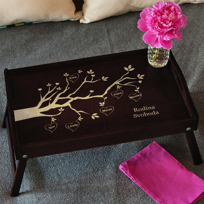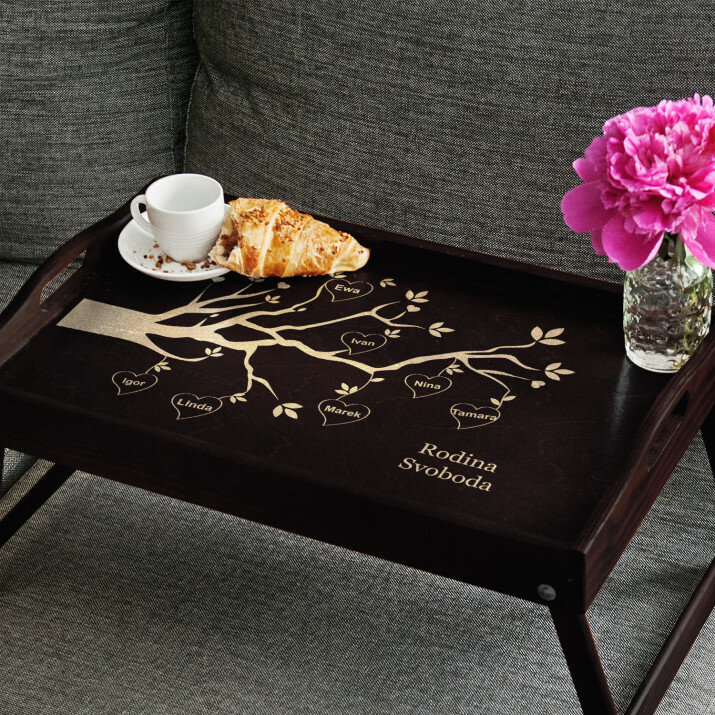 Napriek veľkému množstvu detailov je každý prvok vyrobený rovnako precízne a detailne. Podnos je v tmavohnedej lesklej farbe, čo by nemalo spôsobiť žiadne problémy s prispôsobením sa rôznym štýlom interiérov.