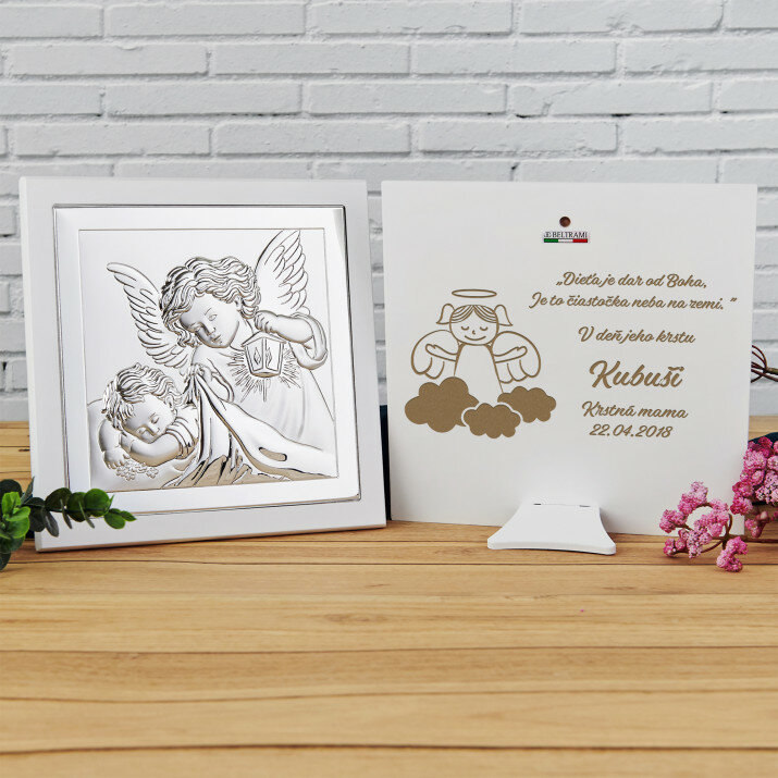 Ten szczególny prezent na chrzciny wywoła uśmiech na twarzy każdej osoby. Wzruszająca dedykowana inskrypcja wygrawerowana po drugiej stronie urokliwego obrazka sprawia, że pamiątka jest niezwykle osobista i jedyna na świecie.