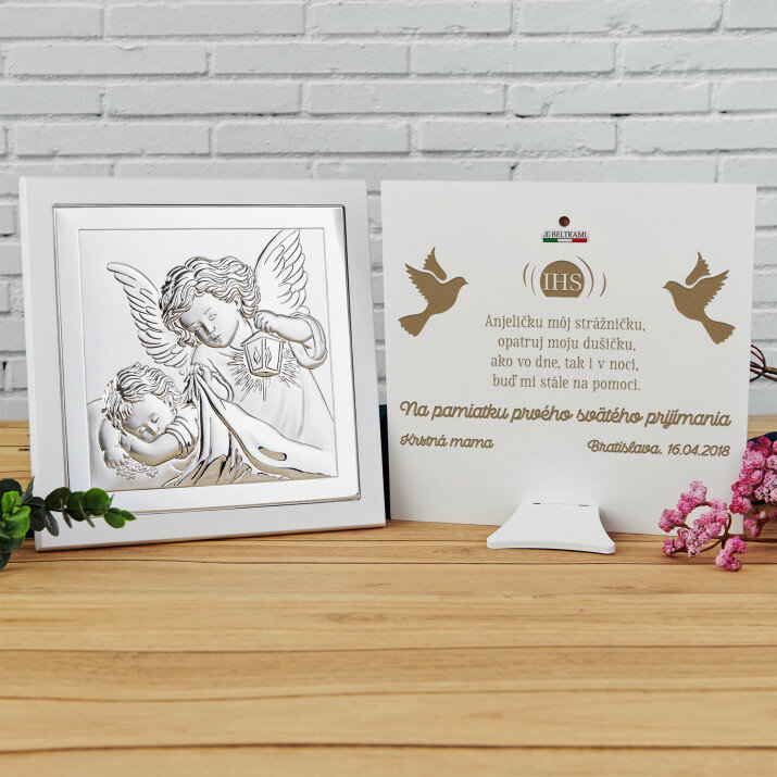 Nádherný obrázok, dostala som ho na ďalší deň po objednaní. Odporúčam, skvelý darček na Prvé sväté prijímanie. Gravírovanie vyzerá veľmi pekne.