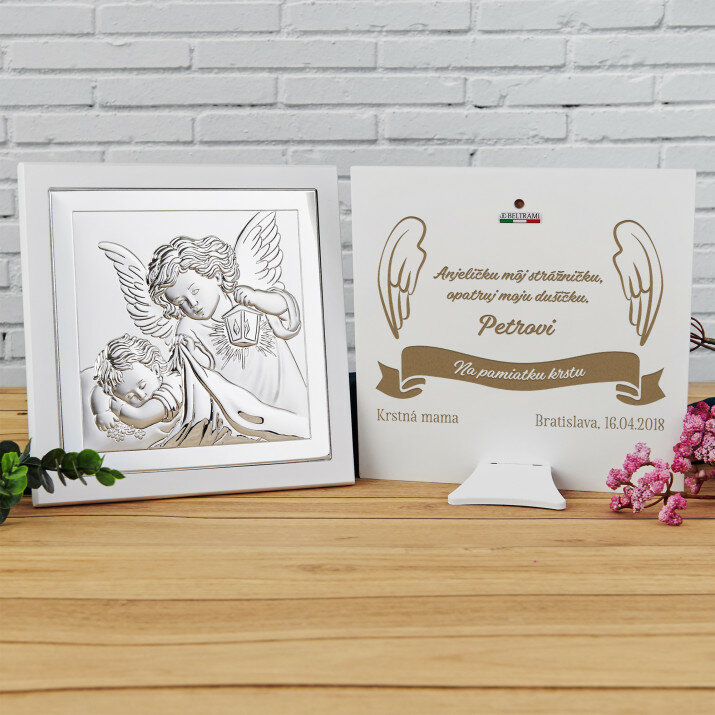 Anjel Boží - Anjel s lampášom - Strieborný obraz s gravírovaním